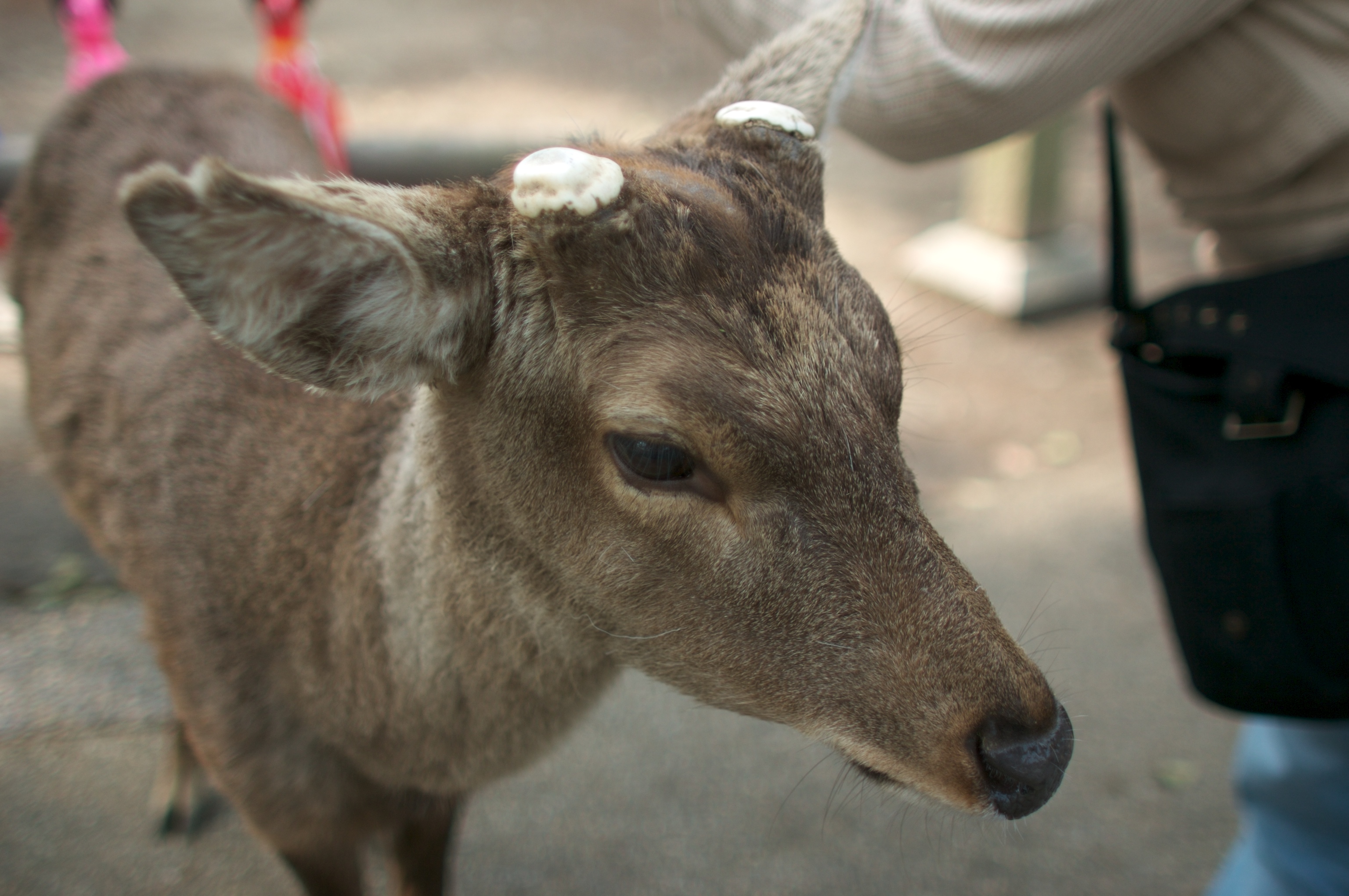 All the males had their antlers removed. Wouldn't help the economy to have the tourists gored by persistant deers wanting biscuts.