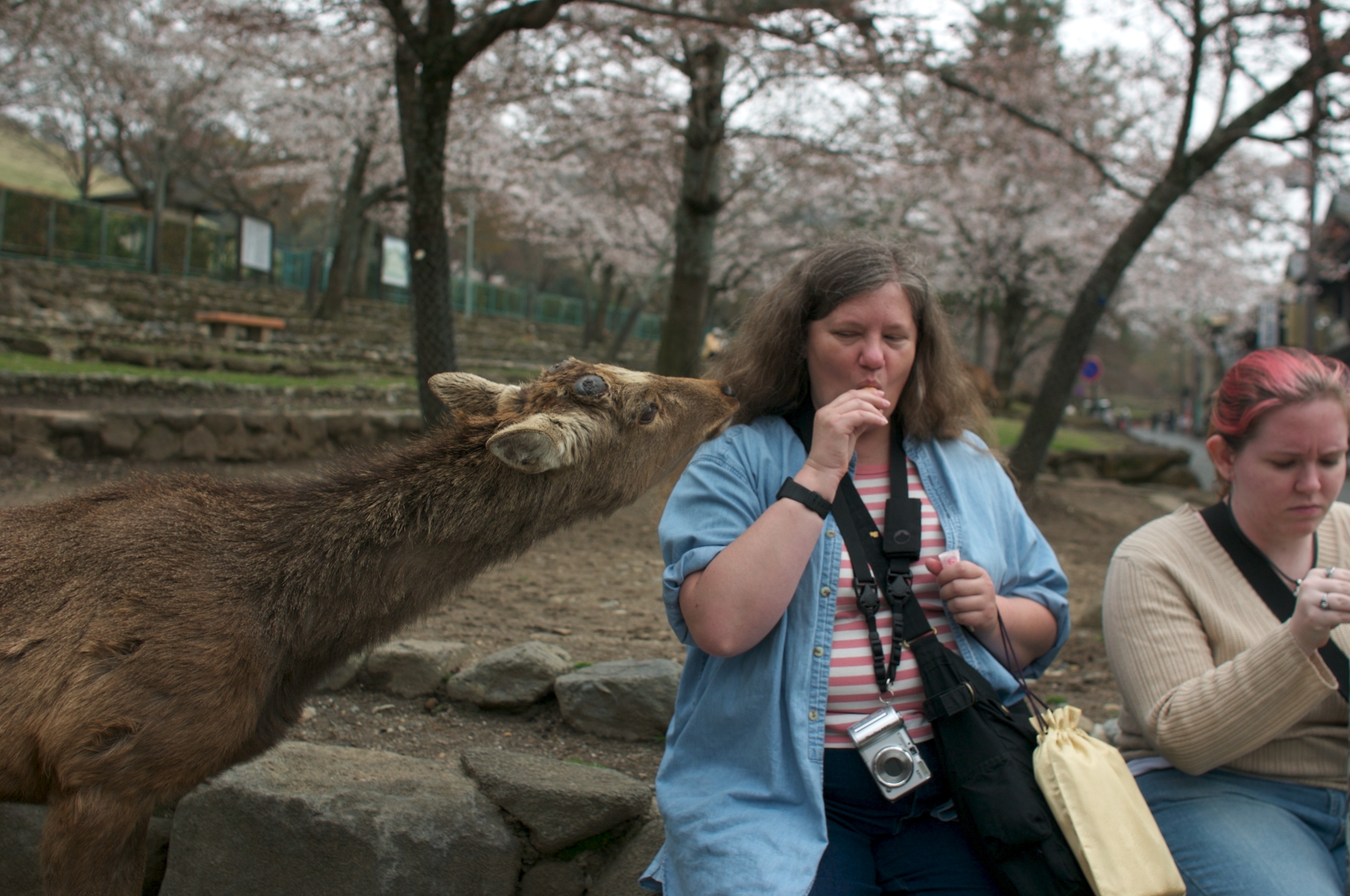 One of the Sika deer taking an interest in Jan and her ice cream cone.
